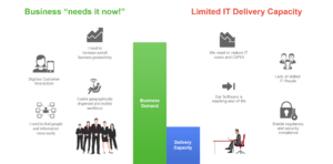 Pain-Point: Legacy applications and off-the-shelf business applications are not able to fill in this evergrowing void. Not to mention, traditional development strategies and timelines are affecting business growth, a clear situation of IT teams not able to match the business demands.